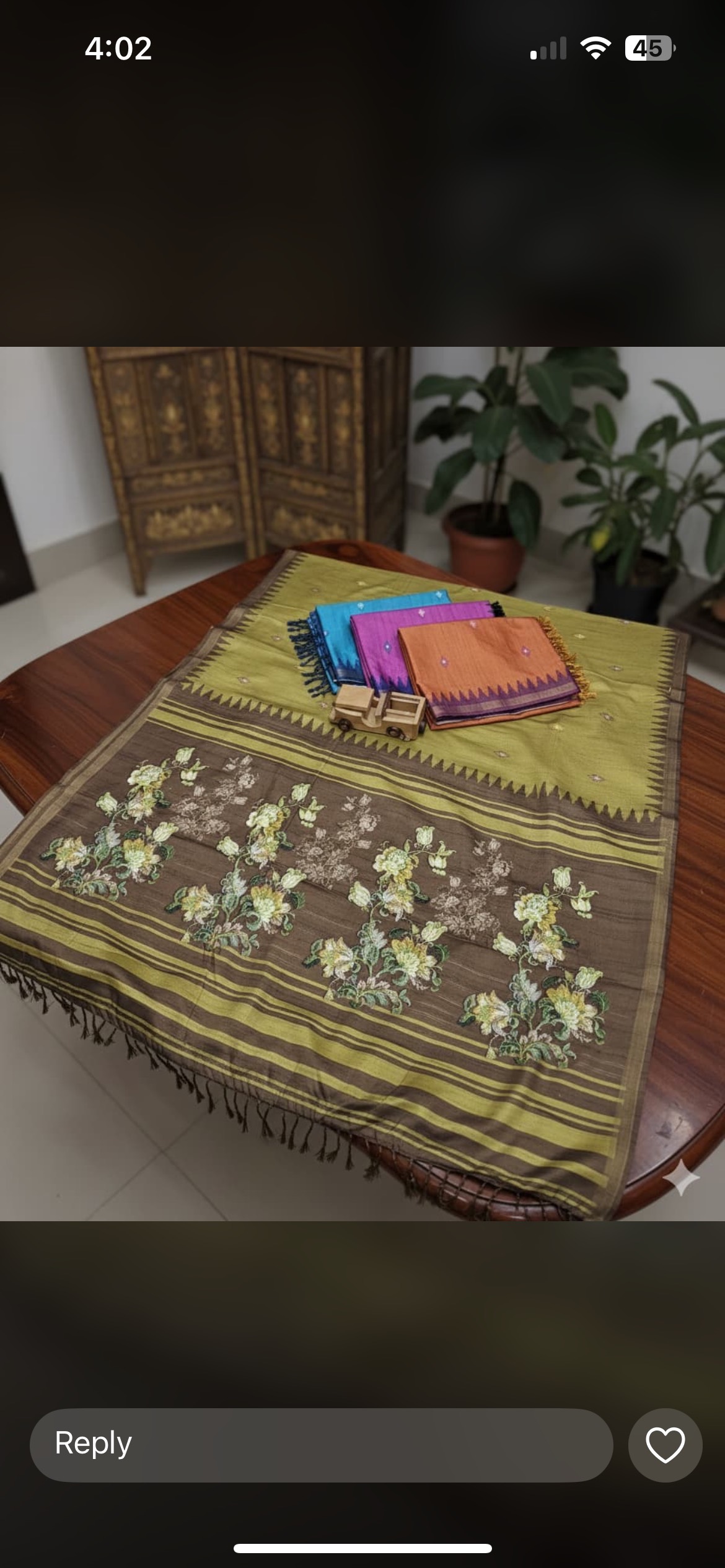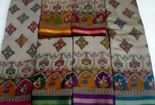 Each saree features beautiful fancy digital prints, enhanced with a stylish tassel (tussle) pallu that adds a contemporary handloom touch. The subtle golden jari pattern near the border elevates the overall look, making these sarees light yet graceful.