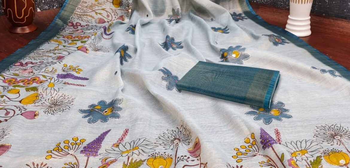 Aari work erode cotton digital print saree exporter india