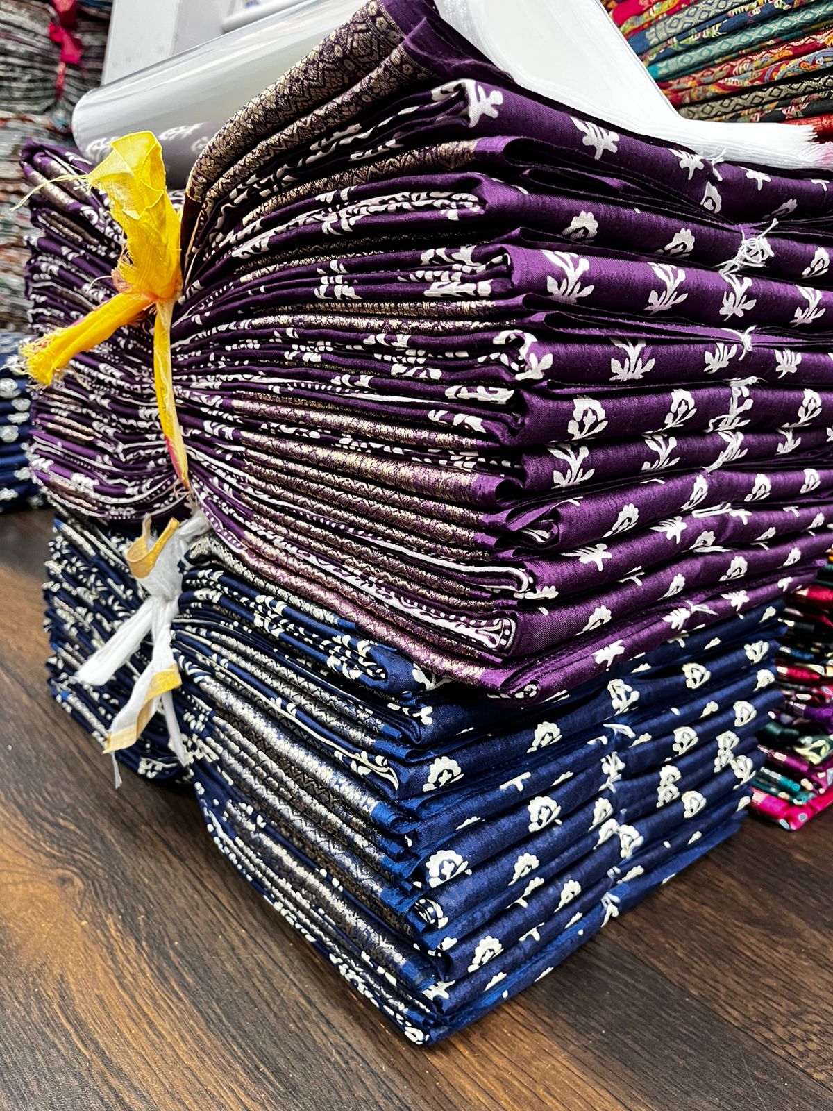 * Wide selection in cotton silk, soft synthetic, and festive pattu styles